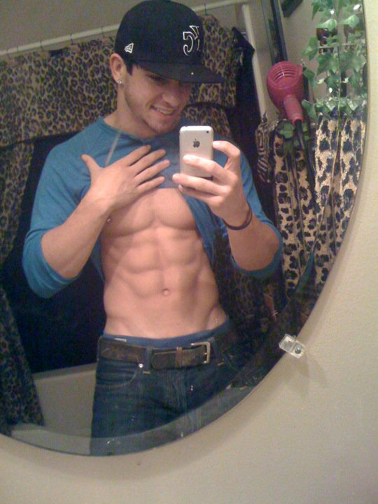 Who doesn't take pictures of themselves while wearing something sexy every once in a while? The self-portrait has been a popular form of expression ever since man first saw his own reflection. Much like Narcissus, it's often the case that we need not look beyond the tip of our own nose for a muse worth studying. As usual, these posts are best when viewed at work. It's difficult to tell whether these guys love themselves or their smartphones more. Sometimes, they're still kind of goofy because these people haven't learned how to hold the camera at arm's length and take their photo. Instead, they have to shoot into a mirror. I guess they don't want to waste the pixels on any bad shots.