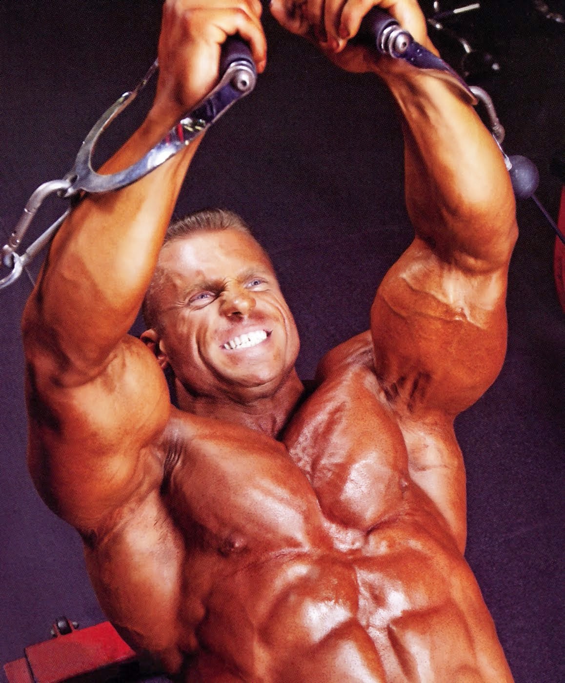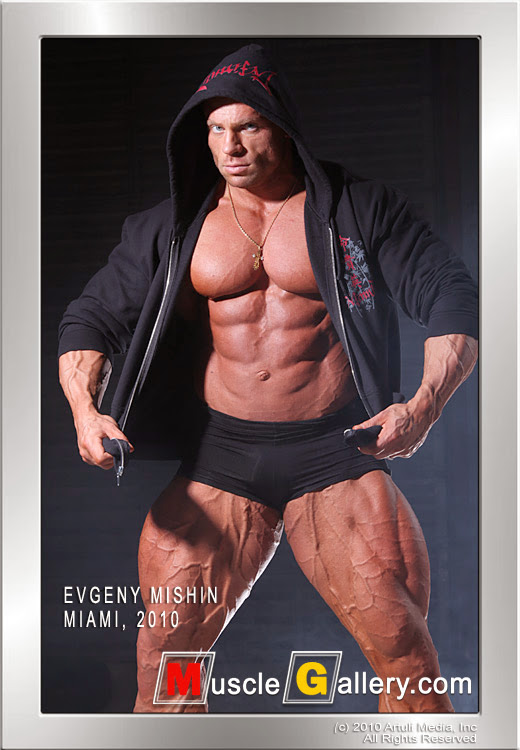 In January 2003 he won his IFBB pro card. Since then, Evgeny has moved to NYC, competing 5 times in IFBB Pro Championships to date. We owe a HUGE debt of gratitude to Bill Comstock for all the great closeups he has gotten of those vascular monsters out there. Here is one of Evgeny Mishin (please excuse me if I spelled that wrong) Look at the angle Bill used on this photo, the lighting....the way it shows those hose like veins on top of that mountainous muscle....he is a real artist with that camera.
