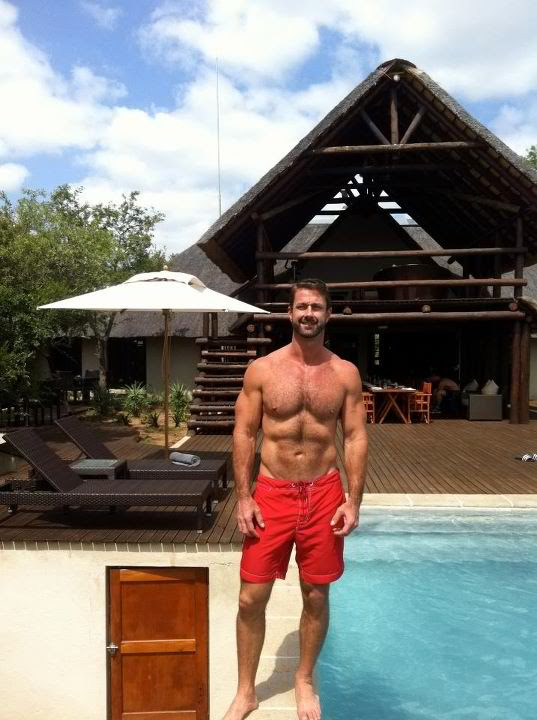 He keeps his head shaved smooth and that's about the only smooth real estate on him. He runs his hands over his muscular pecs and abs before finally slipping out of his underwear!!! So, the next thing that happened I can't give the details for you, but I'm sure that you can fantasize it.